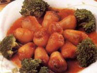 猪瘦肉约300克、净荸荠片100克、3克蒜末、15克葱段、50克番茄汁