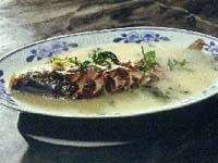2、起锅下油,煸炒肉丝,下泡辣椒丝,葱姜丝煸炒,再放入香菇丝,冬笋丝,榨菜丝,加酱油,胡椒粉,料酒,味精炒匀,出锅后浇在鱼上。