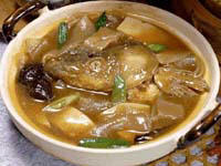 鱼头2个,香菇冬笋各50克,豆腐100克。